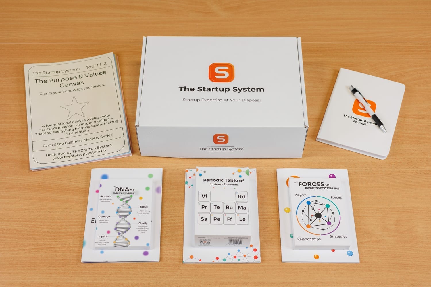 The Startup System is a comprehensive physical toolkit and online platform designed to equip aspiring entrepreneurs with the knowledge, tools, and support needed to launch and scale successful businesses.
