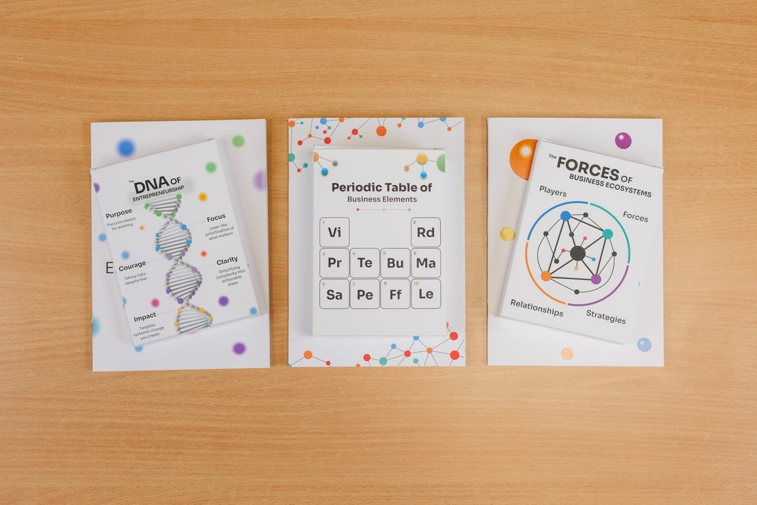 Everything you need to begin your startup. From idea to launch, we've got you covered. Physical cards, guides, assessments, canvases.